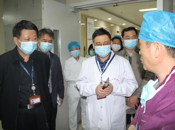 赵家军一行实地查看了麻醉手术科二部、神经内科、耳鼻喉科、消化内科、神经外科、创伤急诊外科、骨关节科、儿科门急诊、发热门诊等,现场督导医疗质量、收治患者等情况的同时,认真听取了科室负责人的意见和建议,叮嘱有关职能部门结合医院实际情况,尽快调研各科室逐步复工后在诊疗设备及药品等物资方面的需求,按照程序集中采购,为临床一线协调、解决问题。