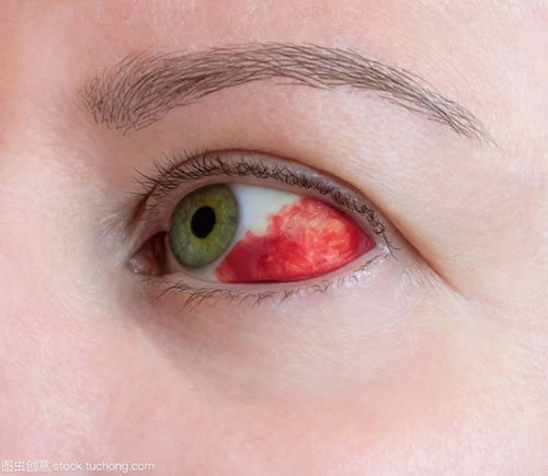所谓结膜下出血就是结膜下的毛细血管破裂造成出血,渗出的血液就被局限在结膜与眼球之间,造成急性眼红。一般是白眼球上面出现一片红色的东西,这不是细菌感染,也不会传染给别人,另外,患者自身并不会感受到疼痛或视力受损。