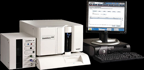 目前中心实验室的Luminex 200多功能液相芯片系统结合了磁珠/非磁珠多重反应体系、分析软件和技术支持,提供了一个快速、精确的生物标记定量平台。这个平台能够在一份微量样本(10-50μl)中检测多达100重生物标志物,应用领域包括自身免疫研究、肿瘤研究、心血管疾病研究、糖尿病与代谢病研究、信号通路研究、基因突变研究、HLA配型研究、HPV分型研究等众多领域。