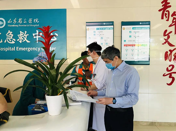 赵升田先后来到东院区发热门诊、门诊、急救中心、抢救室、急诊监护、儿科门诊、神经内科病房等临床科室及创伤中心装修现场,详细了解了医院各科室疫情防控、复工复产等方面情况;询问了疫情防控中科室存在的问题、工作中的困难及医院疫情防控措施的落实情况;听取了科室前期收治病人情况。赵升田要求各科室统筹做好疫情防控和复工复产各项工作,根据国务院联防联控机制综发【2020】169号文件《关于落实常态化疫情防控要求进一步加强医疗机构感染防控工作的通知》及省疫情处置工作领导小组《全面做好新冠肺炎疫情常态化防控工作方案》文件精神,结合我院实际情况,分阶段逐步推进对“12类人员”新冠肺炎核酸检测“应检尽检、愿检尽检”工作。