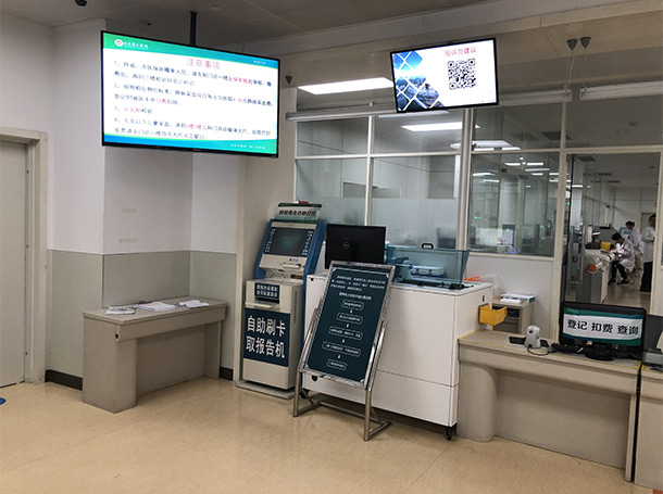 为了方便就诊人员填写调查问卷,及时有效的反馈就诊体验及意见和建议,科室将调查表在东院检验科候诊大厅通过电子屏幕滚动进行展示。