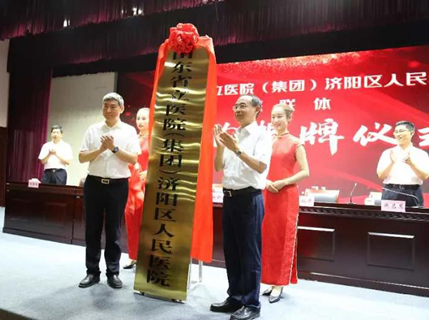7 月 21 日,山东省立医院(集团)济阳区人民医院揭牌仪式在区人民医院三楼会议室举行。山东第一医科大学附属省立医院(山东省立医院)党委书记赵升田、济阳区委书记吕灿华为医院揭牌。省立医院党委委员、副院长李乐平与济阳区政协副主席、区人民医院院长卢士平签订合作协议。济南市卫健委党组成员、副局级领导干部成昌慧参加了揭牌仪式。济阳副区长牟晓丽主持仪式。省立医院相关职能部门负责人及专家代表共同参加了揭牌仪式。