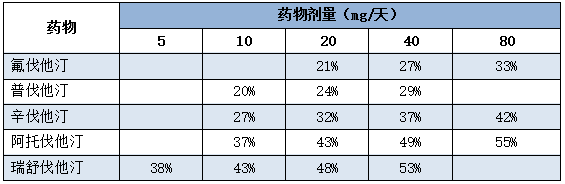 注:瑞舒伐他汀40mg未获得CFDA批准,且禁用于亚裔人群。