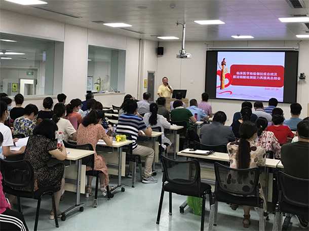 临床医学检验部副部长王勇发言,要进一步加强实验室安全管理和质量控制工作:新冠核酸检测阳性设置危急值,定期生物安全培训和演练;严格室内质控和使用带内标的检验试剂监控核酸提取和扩增过程。定期参加卫健委临床检验中心和山东省临床检验中心的室间质评,保证结果的可比性和准确性。同时制定下半年新冠核酸检测工作制定人力资源紧急替代方案,合理安排各项工作有序进行。