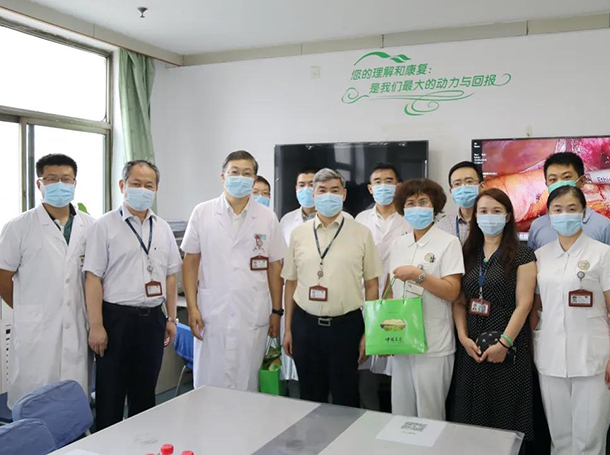 8月4日至10日,院领导班子成员带领各职能处室负责人及各总支书记共分成8组,亲切慰问了中心院区的28个科室代表以及东院9个科室代表,为大家发放降温茶。党委书记赵升田走访慰问了中心院区神经科、胃肠外科、肝胆外科等科室一线职工。院长赵家军走访了中心院区急诊、发热门诊、肿瘤科等科室一线职工。院领导与到访科室的职工们亲切握手并给予诚挚的问候。慰问中,院领导与职工亲切交谈,在详细了解各科室运转情况的同时,特别叮嘱大家要照顾好各自的身体,在疫情期间更要注意常态化防控,坚决打赢疫情防控攻坚战。