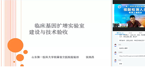 为进一步提高我省新冠病毒核酸检测能力,做好核酸检验人员储备工作, 8月15日至16日,由山东省卫生健康委员会主办,山东省临床检验中心承办的山东省第二期新冠病毒核酸检测人员专项培训班在华医网以网络直播的形式举行,我院临床医学检验部张炳倡主任、卢志明主任、王长印副主任、PCR实验室刘义庆主任及赵胜梅、刘春梅两位博士在培训班上做了精彩的授课。