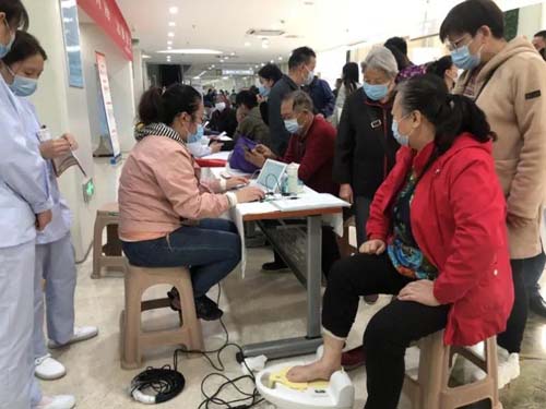 义诊活动受到广大患者和群众的热烈欢迎。在省立医院一楼门诊大厅,一早就有闻讯而来的老年人在活动现场等待,骨密度测量仪器前面排起了长队。老人们拿着已经得到的骨密度测量结果仔细询问在场的专家,专家们耐心地一一给予解答。经过现场筛查,许多老年人骨密度已经达到骨质疏松的程度。内分泌科徐进、王哲、陈海燕等专家针对每位患者的检查结果进行指导。内分泌科护士长金小龙针对骨质疏松的保健知识为患者进行讲解。