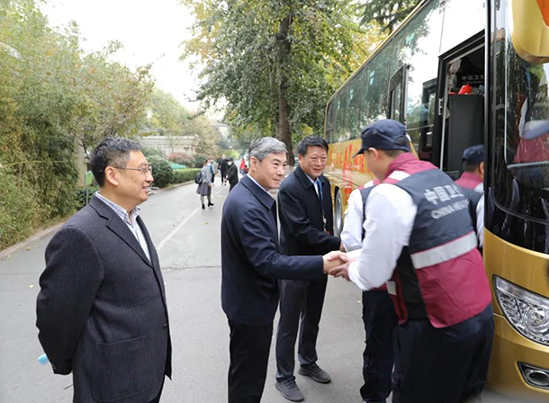 日前,国家移动突发中毒事件卫生应急处置中心(山东)应急队100余名队员启程前往济南市莱芜区雪野训练营地,进行集训,迎接国家验收。山东第一医科大学附属省立医院(山东省立医院)党委书记赵升田,院长赵家军,在家院领导、相关部门负责人分别为队员送行。
