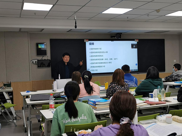 近日,山东第一医科大学附属省立医院(山东省立医院)皮肤科《皮肤性病学》线上线下混合式教学改革正式启动,山东第一医科大学附属皮肤病医院院长张福仁教授和省立医院皮肤科主任党宁宁教授,为山东大学齐鲁医学院2017级临床医学专业“5+3”学制的学生们进行首次授课。