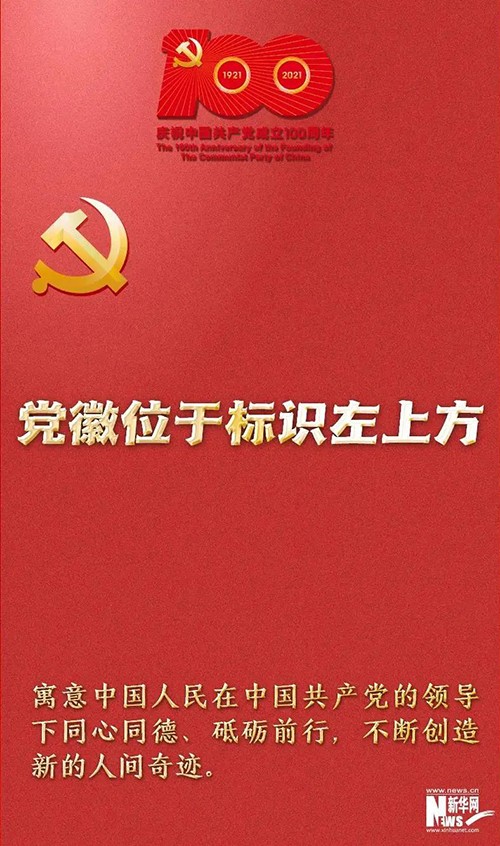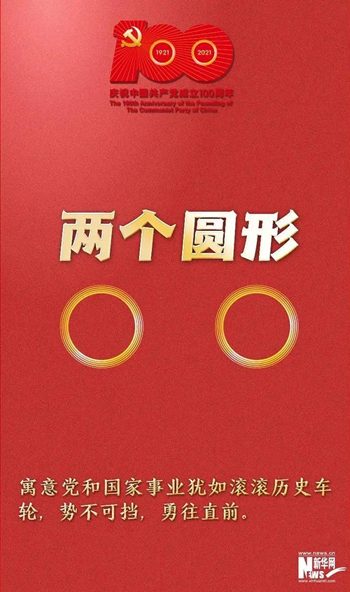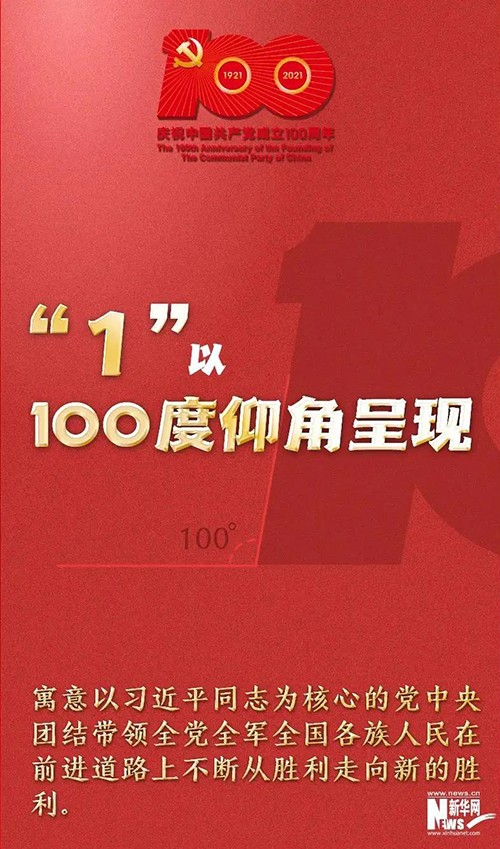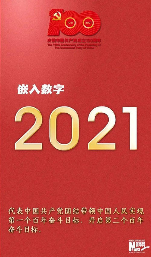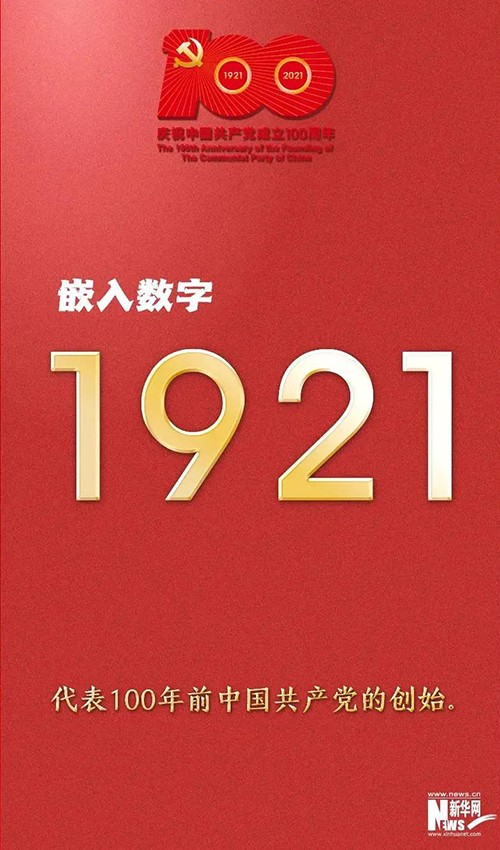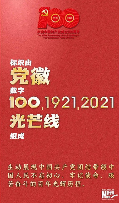 “100”“1921”“2021”和56根光芒线组成