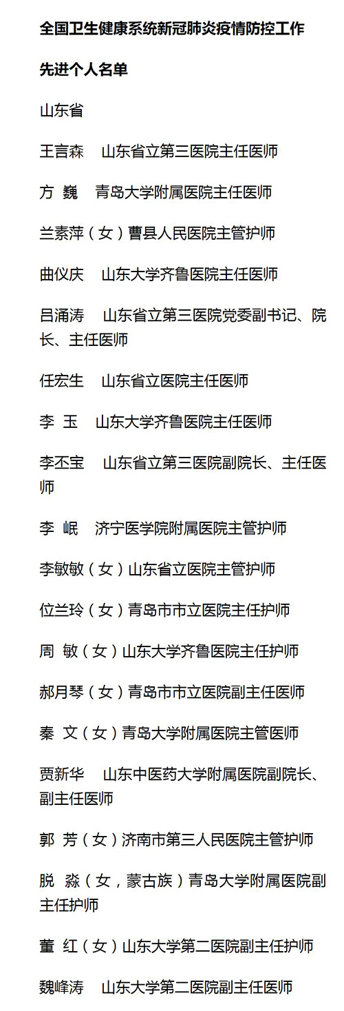 三部门表彰全国卫生健康系统疫情防控先进集体及先进个人!我院援助湖北医疗队员任宏生、李敏敏获先进个人荣誉称号