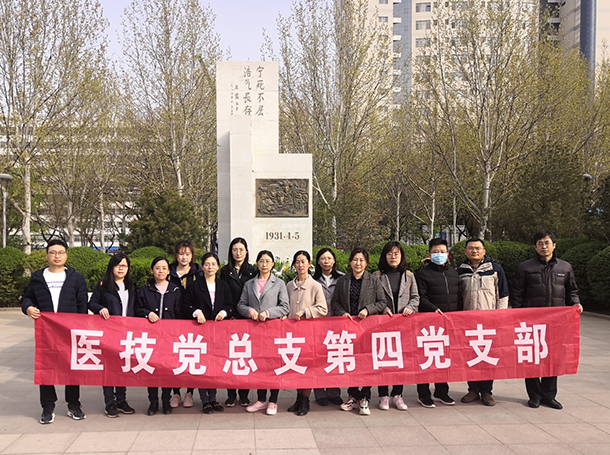 4月2日,医技党总支第四党支部全体党员和预备党员、入党积极分子齐聚槐荫广场东北角,举行“四五”烈士纪念活动。