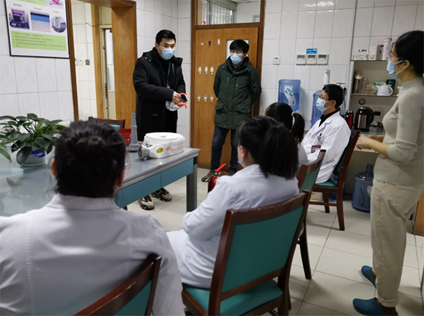 为了进一步提高科室职工的消防安全能力,提高火灾逃生技能,医院输血科特开展消防安全教育活动,并邀请保卫部工作人员对全体职工进行安全培训。