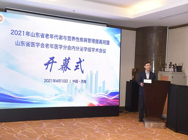 4月10日,2021年山东省老年代谢与营养性疾病管理提高班暨山东省医学会老年医学分会内分泌学组学术会议在济南召开。此次会议由山东省医学会老年医学分会内分泌学组主办,山东第一医科大学附属省立医院(山东省立医院)老年内分泌科承办。省立医院党委委员、副院长孙志坚参加会议并致辞。山东省医学会老年医学分会副主委兼内分泌学组组长、省立医院老年内分泌科主任李明龙主持会议开幕式。