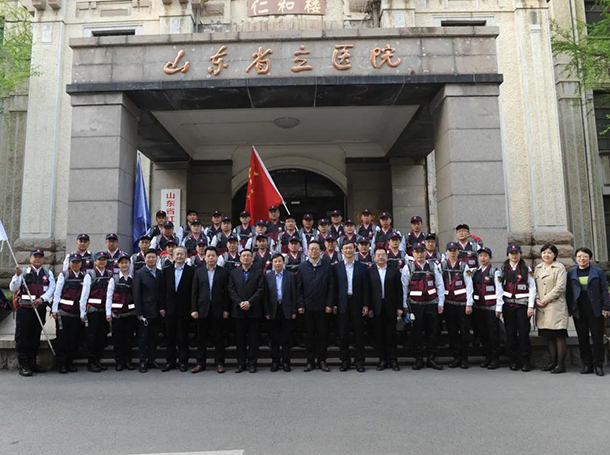 4月8日早上,40名国家卫生应急队员携带各类装备在山东第一医科大学附属省立医院(山东省立医院)集合,正式开始训练。医院在家院领导及相关职能部门负责人为队员送行。