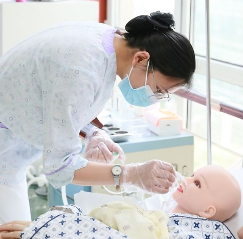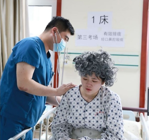 为深入考评选手的评判性思维能力与临床实操能力,技能竞赛采用临床实境模拟考核的形式,并引入经过统一培训的“标准化病人”。选手在不足20分钟的时间内,依据“患者”病例信息,实施综合评估、分析,依次完成徒手心肺复苏或简易呼吸器辅助通气,有效排痰、经口鼻腔吸痰等3项操作。选手们基于日常工作积累,沉着应赛,在熟练、规范完成各项操作的同时,根据患者病情、需求及临床情境实施个性化护理,展现出了良好的专业素质与人文素养。