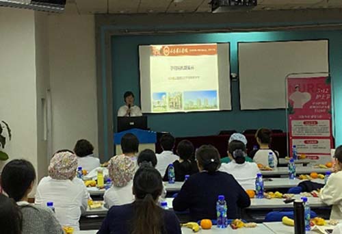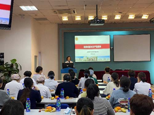 营养护理组成员程楠围绕健康减重进行了专题讲解,介绍了减肥过程中常见的饮食误区,并结合居民膳食指南和膳食宝塔讲述了减重期间正确、合理的饮食方法,帮助大家“越吃越瘦,越健康”。营养护理组成员张冰讲解了孕期和哺乳期的营养知识。她结合自身在产科病房多年的工作经验,并以孕期和哺乳期妇女膳食指南为指导,介绍了孕期不同阶段和产后各类营养素的摄入量以及各种富含营养素的食物,帮助大家走出孕产期饮食误区,科学、均衡饮食。现场听众积极参与互动,主动分享自己的减肥心得和孕产期饮食状况,授课老师给予指导和评价,会议气氛活跃。