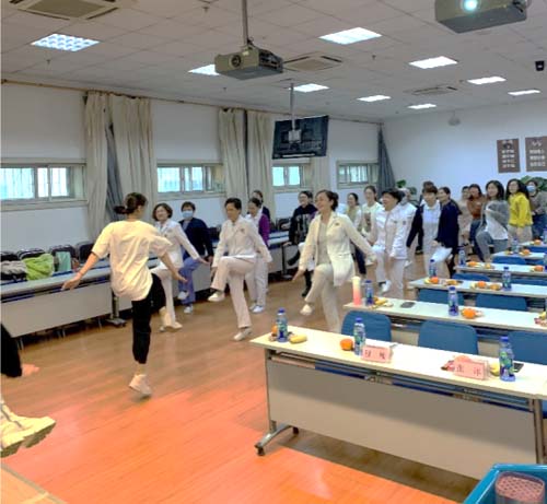 本次活动旨在宣传合理营养和平衡膳食的理念,培养健康的生活和饮食方式,更好地关爱护理人员的身体健康。活动在一段的活泼的健身操中拉开帷幕,现场观众在3名营养小组成员的带领下,共同完成了极具动感的健身燃脂操,一起感受了运动的激情。