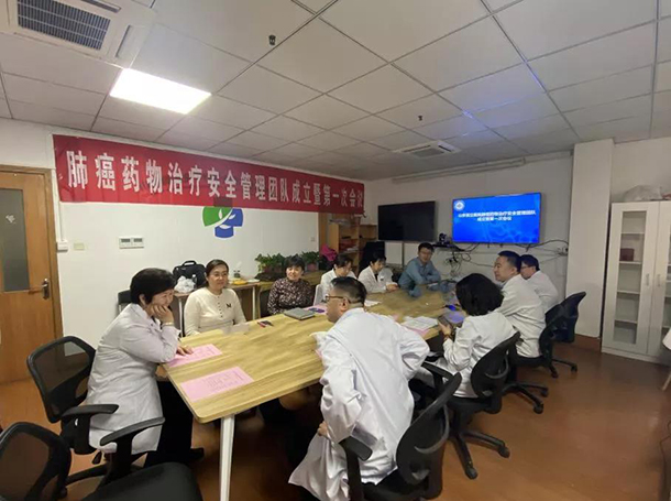 为了规范晚期肺癌的药物治疗(包括靶向治疗、化疗、抗血管生成、免疫治疗等),及时诊断并处理药物相关不良反应,提高临床肿瘤药物治疗的合理性和安全性,日前,由呼吸与危重症医学科主任医师苏莉莉牵头并负责,包括药学部、肿瘤放疗科、肿瘤化疗科、感染性疾病科、心内科、内分泌科、消化科和皮肤科等相关专家参与的肺癌药物治疗安全管理MDT团队正式成立,在肿瘤中心一楼会议室举办第一次学术会议。