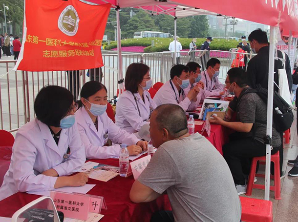 5月15日上午,山东第一医科大学附属省立医院(山东省立医院)参加在泉城广场举行的“学好百年党史,服务百姓健康”大型义诊活动。