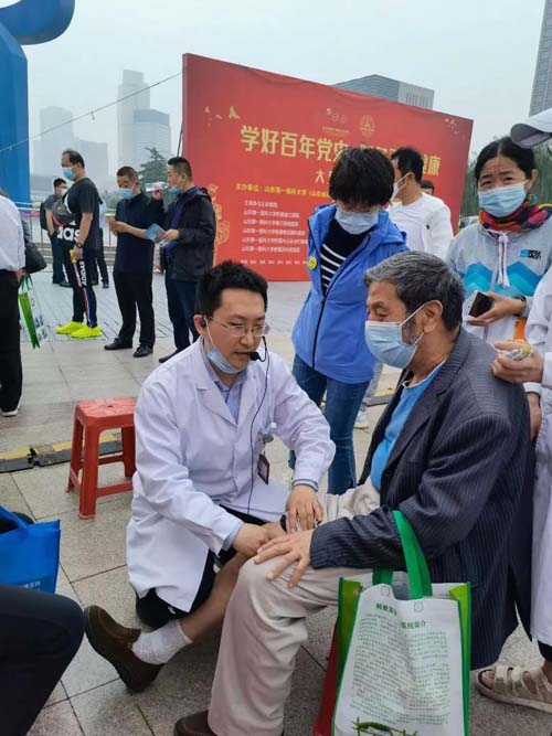5月15日上午,山东第一医科大学附属省立医院(山东省立医院)参加在泉城广场举行的“学好百年党史,服务百姓健康”大型义诊活动。