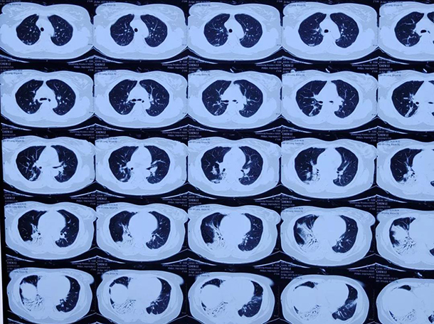 医院中毒与职业病科张兴国主任团队凭借丰富的临床救治经验,结合患者实际情况,综合评估病情,制定了一套全新的综合治疗方案。抑制机体炎症风暴,并准确评估患者肺部感染情况,及时给予有效抗生素治疗,联合抗氧化、抗肺部纤维化、稳定机体内环境、护理口腔喉咽部粘膜溃疡等综合治疗。经过紧张的治疗,患者的生命体征逐渐平稳,肺部感染有效控制,急性肾损伤逐渐恢复,肺损伤影像学病变范围逐渐缩小(见附图),动脉氧分压恢复到77mmHg,血氧饱和度达到99%,其他生化指标均无明显异常,患者无明显呼吸道症状,可下床自行活动,康复出院。
