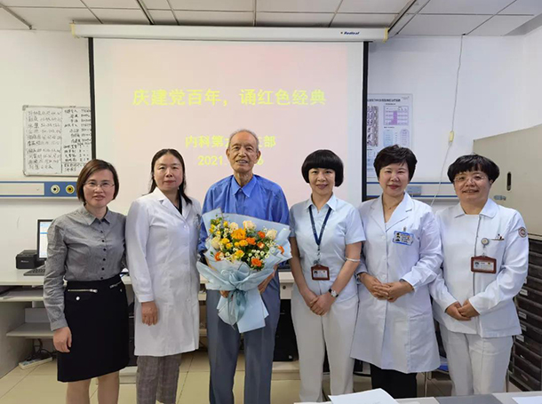 为庆祝中国共产党成立100周年,落实医院关于开展“红心向党,聆听老党员讲述党的故事”省医老党员文化传承活动及“庆建党百年,诵红色经典”经典诵读活动要求,充分展示省医积极向上、紧跟党走的良好精神面貌,5月26日,山东第一医科大学附属省立医院(山东省立医院)内科总支六支部在医院北区5楼呼吸与危重症医学科医生办公室,成功举办了“红心向党,不忘初心,砥砺前行” 老党员文化传承活动暨红色经典朗诵会。
