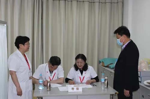 为做好考核期间疫情防控工作,考前医院加强疫情安全管理、疫情防控培训、应急事件和舆情应对处置等,考场入口处设立体温检测处,考场内设置隔离观察点。考核过程中,采取考生和考核工作人员进入考场检测体温、查验健康码,严格考场卫生清洁消毒等一系列措施,确保考核工作顺利进行。
