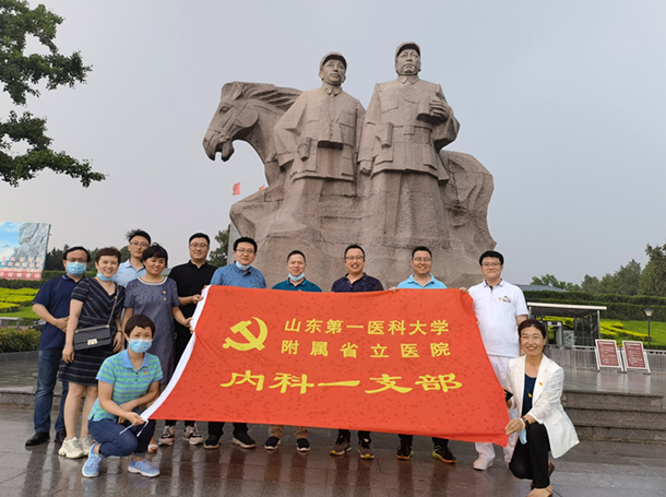 为庆祝建党100周年,进一步继承和发扬中国共产党的光荣传统,扎实开展党史学习教育,为群众办实事,不断增强基层党组织的凝聚力和战斗力,6月13~14日,山东第一医科大学附属省立医院(山东省立医院)内科党总支第一党支部在支部书记苑海涛的带领下,走进孟良崮纪念馆、红嫂纪念馆,瞻仰红色足迹,传承红色基因,进行了一次生动且深刻的思想洗礼,并前往费县朱田镇乡镇卫生院开展义诊活动,将优质医疗服务送到群众身旁。
