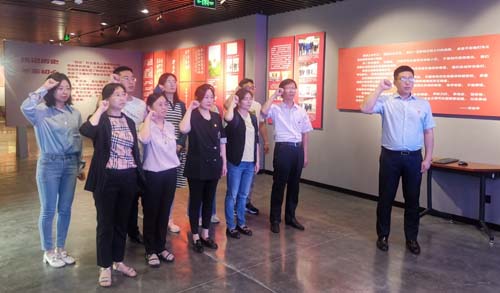 1931年4月5日,在济南市纬八路国民党刑场、今省委党校西校区院内,中共一大代表邓恩铭等22位共产党员被国民党反动派杀害,史称“四五”烈士。党员们在讲解人员的引领下,通过文字介绍、影像呈现、实物展陈等形式观看了基地主题展览《穿越时空的党课》,学习了山东早期党组织发展与斗争、烈士生平和英勇就义等内容。感悟了那段血雨腥风的峥嵘岁月,接受了一次深刻的灵魂洗礼,点燃大家不畏艰险、英勇奋斗、攻坚克难、一往无前的澎湃激情。最后,全体党员在“不忘初心、牢记使命”宣誓墙前,面对烈士鲜血染红的猎猎党旗,举起右手,再一次重温入党誓词,表达了对党的坚定信念和真挚情感。