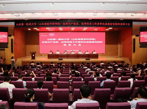 6月30日,山东第一医科大学(山东省医学科学院)优秀共产党员、优秀党务工作者和先进基层党组织表彰大会在济南主校区召开。会议隆重表彰了优秀共产党员、优秀党务工作者和先进基层党组织,激励广大党员干部牢记总书记嘱托,不忘初心、牢记使命,接续奋斗、砥砺前行,奋力开创一流大学建设新局面。校(院)党委常务副书记韩金祥发表讲话,校(院)党委委员、副校(院)长彭春雷主持会议。山东第一医科大学附属省立医院(山东省立医院)党委书记孟冬参加会议,副书记姜民杰代表医院党委领受先进基层党组织表彰,党委委员、副院长王荣作为山东省优秀共产党员代表作典型发言。