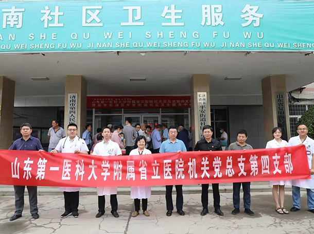 7月3日,山东第一医科大学附属省立医院(山东省立医院)机关党总支四支部依托复明手术车项目,到济南市长清区平安街道社区卫生服务中心开展义诊活动,并为其建立远程医疗系统。省立医院机关党总支书记董宝华、机关党总支第四支部副书记张喜雨、医务部负责人王默、医务部闫根全及眼科李琳、神经外科曲元明、心内科田洪波、神经内科刘效辉、脊柱外科王乃国等多位专家参加了此次义诊活动。