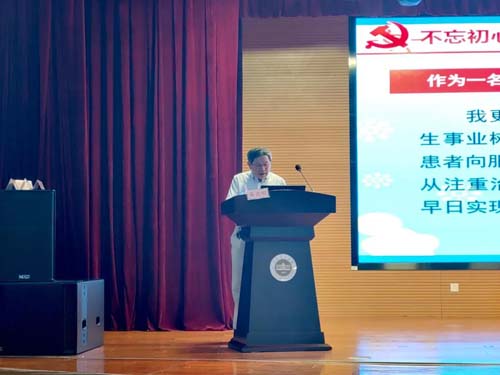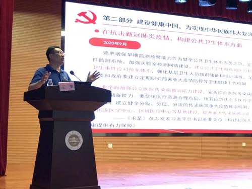 王荣副院长以《践行新时代卫生健康新政策,迈向健康中国新征程》为题讲授专题党课。他深刻解读了全面推进健康中国建设的重大意义,加快推进健康中国建设,为实现“两个一百年”奋斗目标、实现中华民族伟大复兴的中国梦打下坚实健康基础。他指出,总支党员要始终把人民群众的身体健康放在首位,更多地思考如何在公立医院改革发展中践行医者初心与使命,加强政治修养与自身建设,不懈奋斗,永葆共产党员的本色和生机。