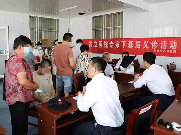 队员们克服恶劣天气影响,穿着统一的中国卫生应急服装到达义诊现场,受到了当地群众的热烈欢迎。全体队员以高度的使命感和责任感,认真接诊每一位群众,详细了解病情,耐心细致解释,科学制定方案,对需重点跟进的患者留下了联系方式。在短短两个小时里,义诊队员们赢得了当地医务人员和群众的高度认可和称赞,充分诠释了“精诚仁和”的省医精神,全面展示了国家卫生应急队伍的良好风采。