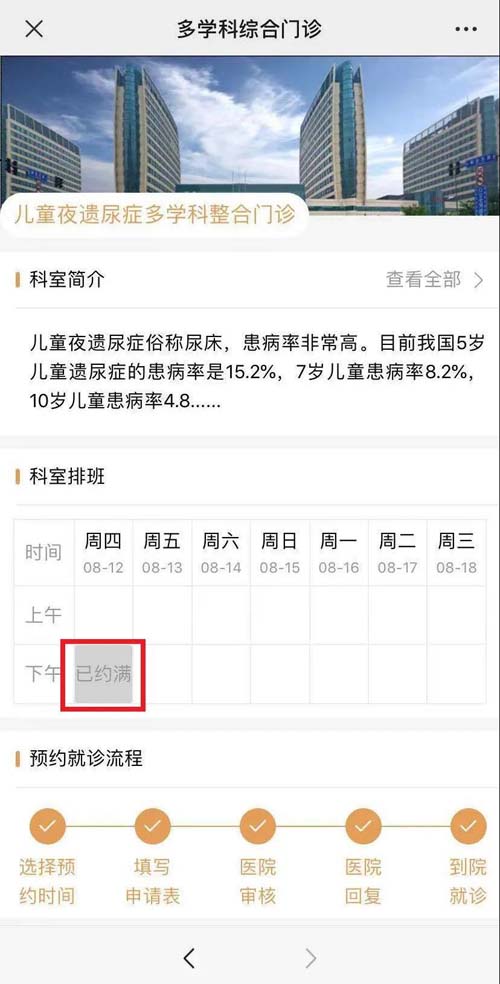 选择相应门诊进行预约