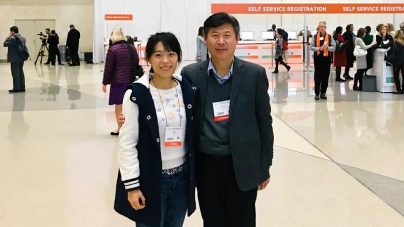 2016年,王潍博去美国参加国际学术会议时,与当时在美国德克萨斯MD安德森癌症中心做博士的女儿合影。
