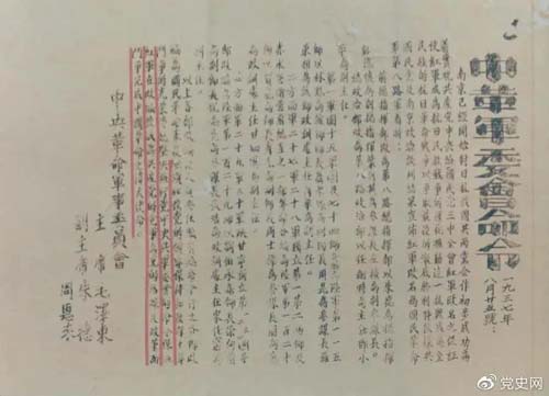 1937年8月25日,毛泽东和朱德、周恩来发出的关于红军改编为国民革命军第八路军的命令。