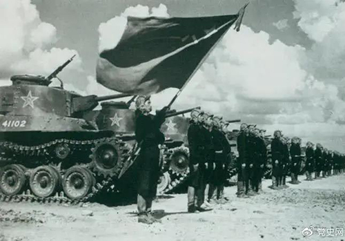 1950年9月,中国人民解放军装甲兵领导机构在北京成立。图为坦克部队阵容。