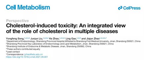 山东第一医科大学附属省立医院赵家军教授团队在Cell Metabolism上发表重磅观点论文:首提胆固醇毒性新概念