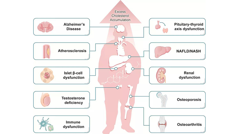 胆固醇是人体不可缺少的物质。当胆固醇过量时,其在血管壁沉积会引发心脑血管疾病。传统观点对胆固醇过量的危害多局限于心血管疾病的发病过程。既往研究表明,多种慢性病比如非酒精性脂肪肝炎、糖尿病,慢性肾病等常伴随有胆固醇过剩。那么,高胆固醇是否也与这些疾病相关?是否是这些疾病的直接风险因素?其机制如何?临床上对该类疾病患者是否需要采取降胆固醇治疗?该文对近二十年间流行病学研究、临床研究、动物及细胞实验的成果进行总结,系统性的探讨了胆固醇在肝、肾、胰腺、大脑等体内多种器官内蓄积所导致的毒性作用。
