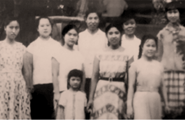 50 年代,护士在医院花园怡心亭前,与胸外科成功施行未闭动脉导管结扎术治疗先天性心脏病的患儿合影,该手术在我省开创了先例。