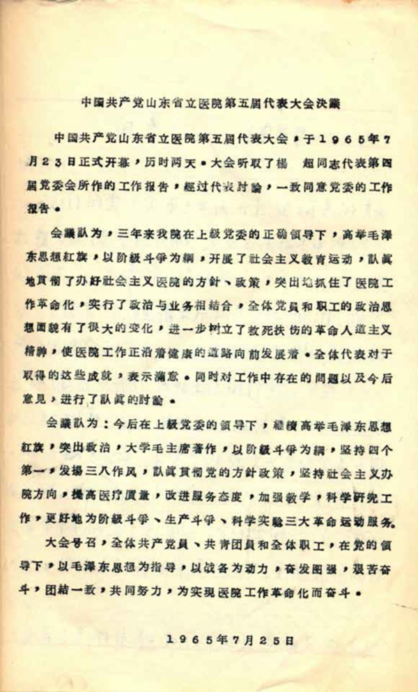 1965 年7 月23 日-24 日,第五届党员代表大会召开。出席大会的正式代表70 人(代表164 名党员),列席代表8 人。