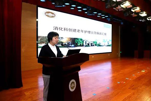 创建老年护理示范病房的科室根据示范病房建设要求,分别从组织管理、适老化改造、风险防控管理、老年综合评估、出院准备服务等方面进行了一一展示,现场汇报得到了评委们的一致好评。