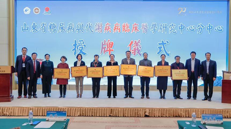 开幕式结束后,赵家军教授、张林秘书长、陈丽教授、管庆波教授及王颜刚教授分别为山东省糖尿病与代谢疾病临床医学研究中心十六个分中心授牌。24名全国著名内分泌专家就糖尿病、甲状腺疾病、肥胖病、下丘脑、垂体、肾上腺、性腺及生殖内分泌等内分泌疾病的临床诊疗进展和基础研究热点进行专题讲座。省内各市级及县区级医院的近100名线下参会代表就临床、科研实践中遇到的热点、难点与参会专家进行交流讨论,线上注册参会1000余人。