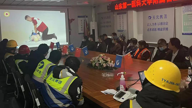 “一只手掌放在患者胸骨中下方,另一只手掌放在第一只手上面,两手平行重叠,肘关节伸直,借助身体重力垂直向下,进行用力、快速的胸外按压。”李太东通过“讲解+实操”的方式,教大家如何判断患者是否停止呼吸或心跳骤停,如何做心肺复苏,并详细讲解了动作要领。他还对在场人员逐一进行技能培训指导,手把手教他们如何正确规范进行操作,提醒大家注意一些容易被忽视的细节。通过演练,工友们很快就掌握了要点,学到了心肺复苏的急救基本要领。