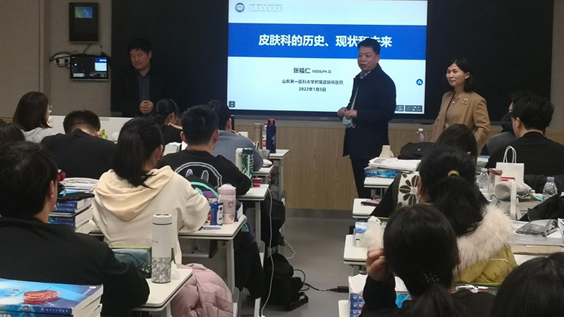 山东第一医科大学(山东省医学科学院)副校(院)长张福仁教授为我院临床医学专业学生讲授皮肤性病学第一课