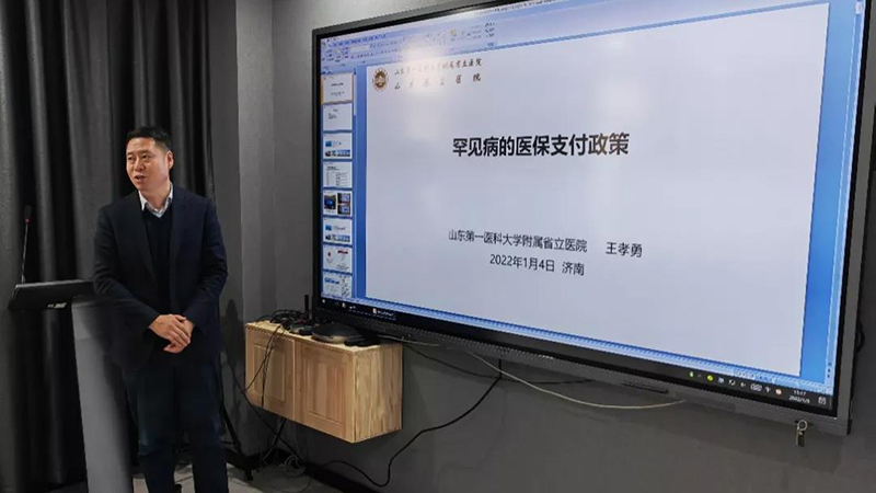 王孝勇在会上介绍了与罕见病相关的医保支付政策。医保药品目录中,2021年新增7种罕见病药品后,共计58种罕见病药品被纳入报销,罕见病用药保障日趋完善。山东省及济南市医保局对提高国谈药品可及性的政策,提出“应配尽配+双渠道”的模式。我院长期以来坚持公益性,切实履行社会责任,为积极配合好医保药品的落地,我院药事委员会及时召开会议,采用简化临采的方式,保障参保患者用药。