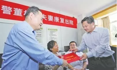 董相勇、赵殿梅二人出院时,山东省立医院为他们举行了欢送仪式。仪式上,山东省立医院院长秦成勇代表医院向他们送上鲜花和2万元慰问金。董相勇夫妇难掩激动,为医院送上锦旗,向在场的医护人员表示衷心感谢。