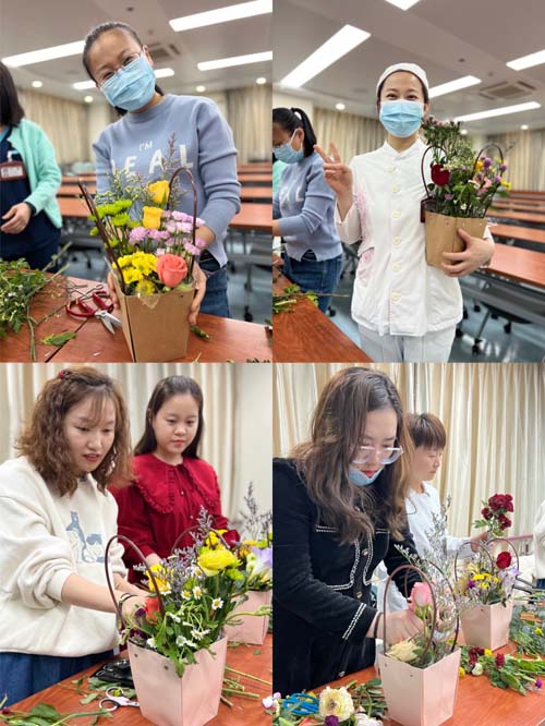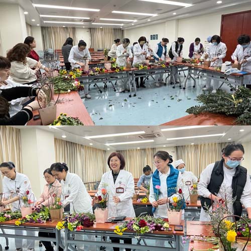 3月7日下午,山东第一医科大学附属省立医院(山东省立医院)东院健康教育护理组在 “三·八”国际劳动妇女节到来之际,举办“天使艺术”插花活动,20余位医护人员参加活动。