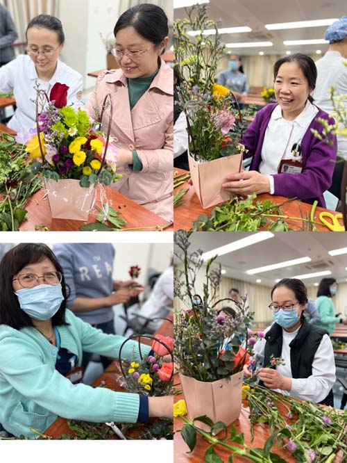 短短两个小时里,20多个构思奇特、风格各异的花艺作品就诞生了。大家表示,在活动中放松了身心,提高了花艺欣赏水平,获益良多。本次艺术插花活动将心与美和谐地融为一体,为医护人员搭建了一个工作之余能够放松身心、展示才艺、助力成长的平台,增强了大家的职业自豪感和角色认同感,将以更好的工作状态为广大患者提供更优质的服务。